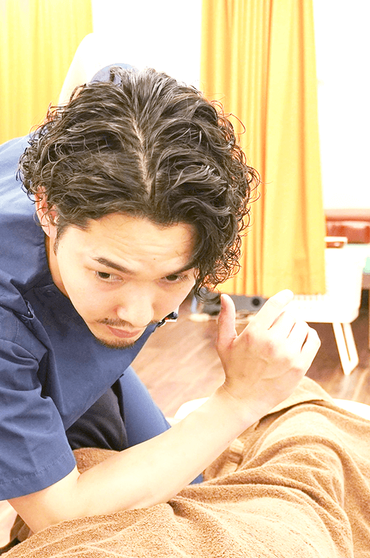 患者様それぞれで痛みの症状や原因が異なります。動きにくい箇所はどこか?痛みがどこに出ているのか?などを検査させていただきます。お1人お1人にあわせたオーダーメイドの治療を心がけます。